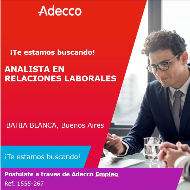 Si te interesa ser ANALISTA EN RELACIONES LABORALES y ser parte de Adecco prestando servicios en nuestro cliente IMPORTANTE EMPRESA DEL RUBRO INDUSTRIAL ¡desafíate a vos mismo y crea tu futuro!